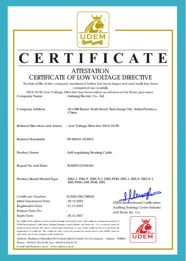 安邦電氣股份有限公司,總部位于北京市長安街,成立于2004年,注冊資金10088萬。安徽生產(chǎn)基地占地面積63000平方米,擁有66套各類生產(chǎn)線,其中進(jìn)口生產(chǎn)線6套。國家高新技術(shù)型企業(yè),滁州市市長質(zhì)量獎企業(yè),專精特新“小巨人”企業(yè),擁有國家知識產(chǎn)權(quán)局授權(quán)的45項專利,其中發(fā)明專利28項 , 主筆《太陽能熱利用自限溫電熱帶安裝規(guī)范》行業(yè)標(biāo)準(zhǔn),參編《自限溫電伴熱帶》國家標(biāo)準(zhǔn)、《工業(yè)和商業(yè)用電阻式伴熱系統(tǒng)》國家標(biāo)準(zhǔn)、《太陽能熱利用自限溫電熱帶》行業(yè)標(biāo)準(zhǔn)、《爆炸性環(huán)境 電阻式伴熱器》國家標(biāo)準(zhǔn)等7項國家標(biāo)準(zhǔn)。企業(yè)通過UL認(rèn)證,國家強制性 CCC產(chǎn)品認(rèn)證,ISO9001質(zhì)量管理體系認(rèn)證,ISO14001環(huán)境管理體系認(rèn)證,ISO45001職業(yè)健康安全管理體系認(rèn)證,Q/SHS0001.1健康、安全與環(huán)境管理體系認(rèn)證,歐盟防爆ATEX認(rèn)證,歐盟CE認(rèn)證,RoHS認(rèn)證,俄羅斯海關(guān)聯(lián)盟認(rèn)證,國家防爆電氣CCC證書。產(chǎn)品系列:集膚伴熱系統(tǒng)、電伴熱系統(tǒng)、電加熱器、電地暖系統(tǒng)、集儀器儀表、電線電纜、高低壓配電柜(箱)、電纜橋架、閥門管件等等設(shè)計、制造、銷售。產(chǎn)品應(yīng)用于航天航空、軍工、石油、石化、天然氣、機場、化工、鋼鐵、隧道、消防、養(yǎng)殖、融雪化冰、室內(nèi)供暖、國家電網(wǎng)及眾多電廠等等國家重點工程。出口美國、英國、德國、俄羅斯、韓國、日本、哈薩克斯坦、烏克蘭、伊朗等眾多國家。